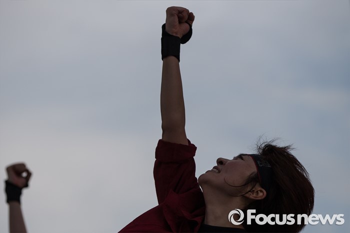 (서울=포커스뉴스) 6일 오후 서울 중구 서울시청광장에서 열린 '건설노동자 총력투쟁 결의대회'에 참석한 조합원들이 안전한 건설현장을 촉구하며 공연을 펼치고 있다.
