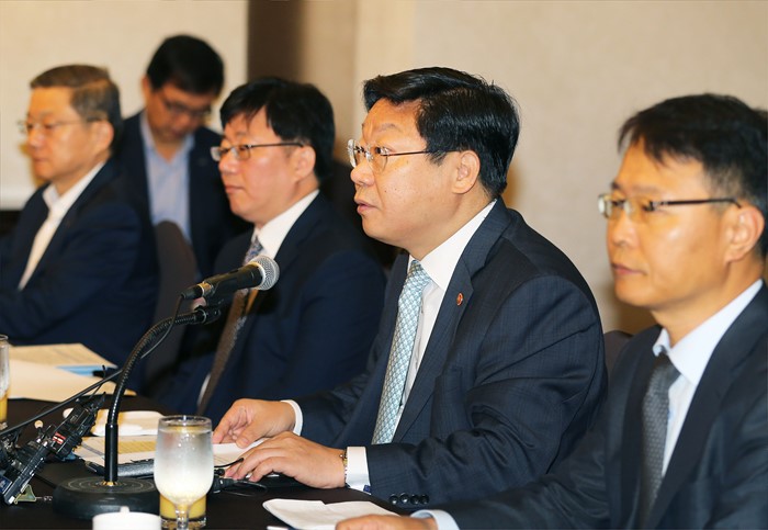 (서울=포커스뉴스) 주형환 산업통상자원부 장관이 6일 서울 팔래스호텔 다이너스티홀에서 채희봉산업부 에너지자원실장, 정창길 중부발전 사장, 조인국 서부발전 사장, 김용진 동서발전 사장, 허 엽 남동발전 사장, 윤종근 남부발전 사장과 산업부 관계자가 참석한 가운데 열린 석탄화력발전 대책회의를 주재하고 있다. <사진제공=산업통상자원부>