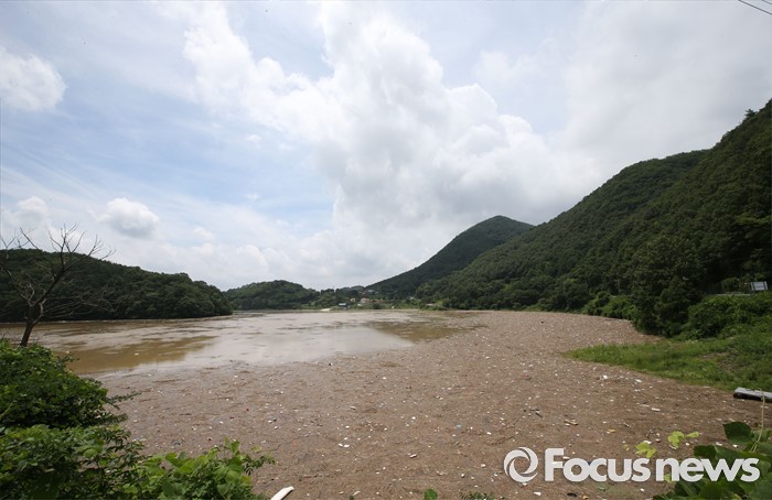 (옥천=포커스뉴스) 중부지방에 내린 집중호우로 7일 오전 충북 옥천군 군북면 대청호일대에 많은 양의 쓰레기 유입돼 있다.