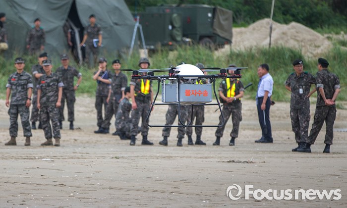 (태안=포커스뉴스) 7일 오전 충청남도 태안군 안면읍 인근 해안에서 2016 합동 해안양륙군수지원(J LOTS) 훈련이 열리고 있다. 합동참모본부 주관으로 해군과 해병대, 육군, 해경이 참가하는 합동 해안양륙군수지원 훈련은 항만 사용이 불가한 지역에서 작전을 수행중인 전투부대에 군수지운을 하기 위한 작전이다.