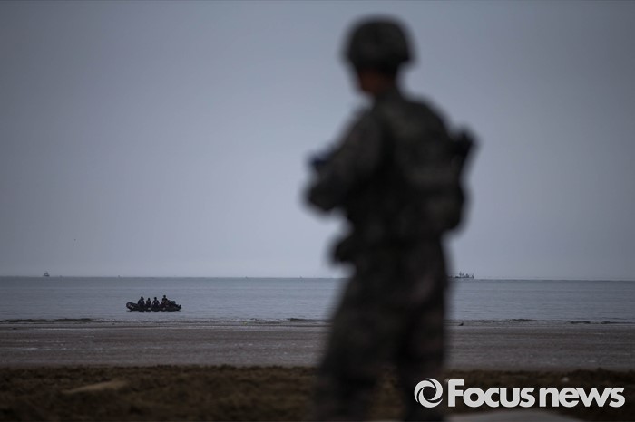 (태안=포커스뉴스) 7일 오전 충청남도 태안군 안면읍 인근 해안에서 2016 합동 해안양륙군수지원(J LOTS) 훈련이 열리고 있다. 합동참모본부 주관으로 해군과 해병대, 육군, 해경이 참가하는 합동 해안양륙군수지원 훈련은 항만 사용이 불가한 지역에서 작전을 수행중인 전투부대에 군수지운을 하기 위한 작전이다.