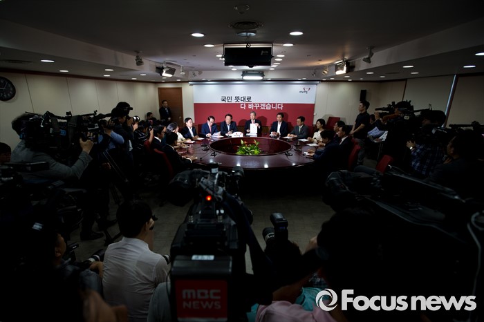 (서울=포커스뉴스) 정진석 새누리당 원내대표가 7일 오전 서울 여의도 새누리당사에서 열린 혁신비상대책위원회의에 참석해 모두발언 하고 있다.
