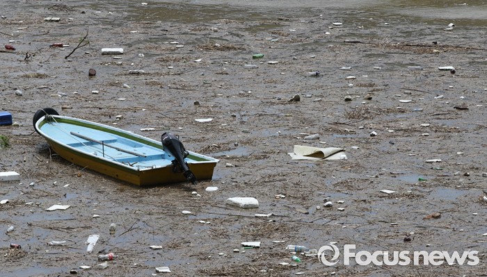 (옥천=포커스뉴스) 중부지방에 내린 집중호우로 7일 오전 충북 옥천군 군북면 대청호일대에 많은 양의 쓰레기 유입돼 있다.