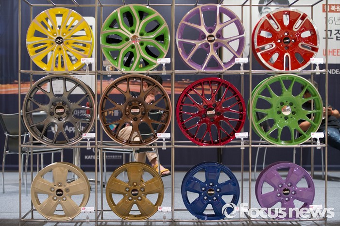 (서울=포커스뉴스) 7일 오전 서울 강남구 코엑스에서 열린 제14회 서울오토살롱에 다양한 튜닝부품들이 전시되어 있다.
