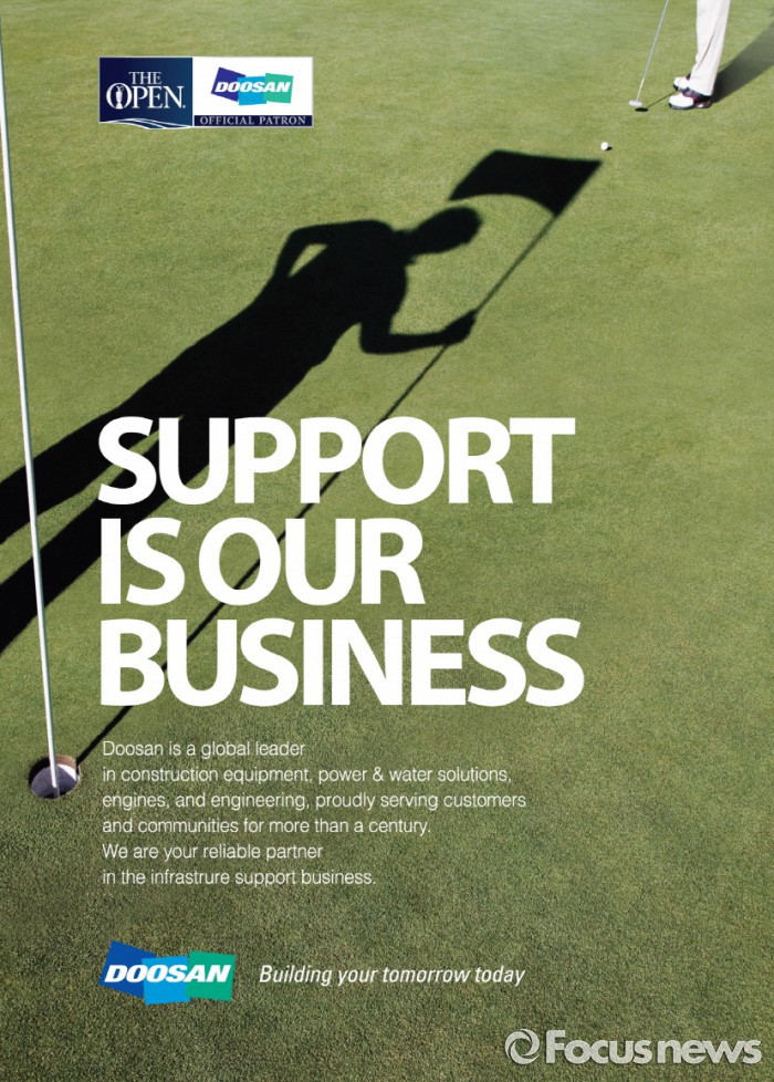올해 디 오픈은 14일부터 17일까지 스코틀랜드 로열트룬 골프클럽에서 열리며, 대회 기간 동안 두산은 로열트룬 골프클럽에 전시관을 설치해 발전, 담수화, 연료전지, 건설장비 등 두산의 주요 비즈니스를 관람객에게 소개할 예정이다.