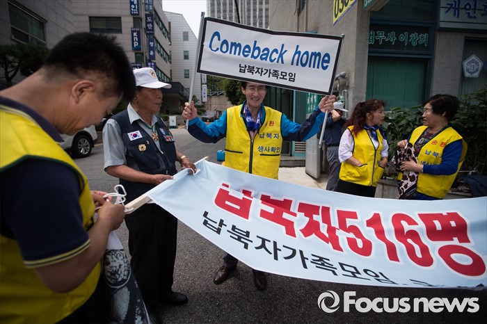 (서울=포커스뉴스) 납북자가족모임과 국군포로가족회 회원들이 7일 오후 서울 서초구 민주사회를위한변호사모임 사무실 앞에서 '납북자들에 대한 인신보호법상 구제 청구' 기자회견을 하고 있다.