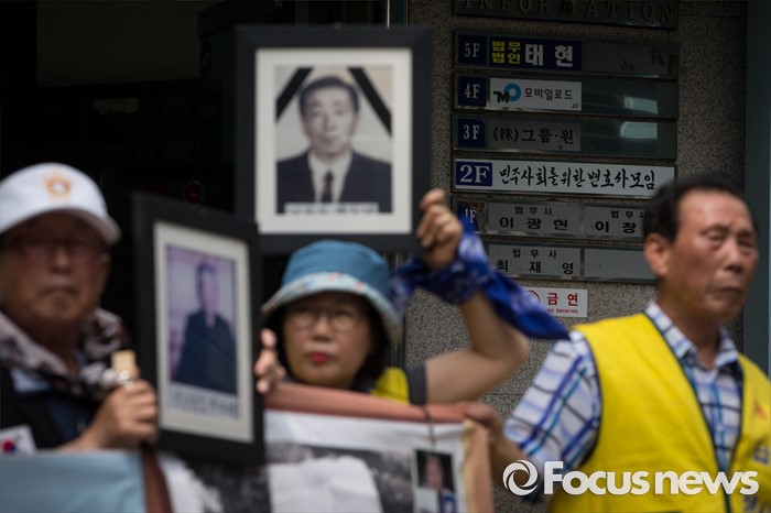 (서울=포커스뉴스) 납북자가족모임과 국군포로가족회 회원들이 7일 오후 서울 서초구 민주사회를위한변호사모임 사무실 앞에서 '납북자들에 대한 인신보호법상 구제 청구' 기자회견을 하고 있다.