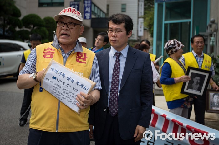 (서울=포커스뉴스) 납북자가족모임과 국군포로가족회 회원들이 7일 오후 서울 서초구 민주사회를위한변호사모임 사무실 앞에서 기자회견을 열고 '납북자들에 대한 인신보호법상 구제 청구'를 하기 위해 민변으로 발길을 옮기고 있다.