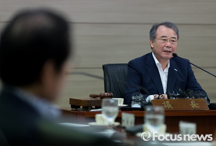 (서울=포커스뉴스) 8일 오전 서울 송파구 올림픽파크텔에서 열린 대한체육회 제4차 긴급 임시 이사회에서 강영중 대한체육회 회장이 인사말을 하고 있다. 이번 임시 이사회에서는 박태환의 리우 올림픽 출전 여부가 긴급 안건으로 상정됐다.