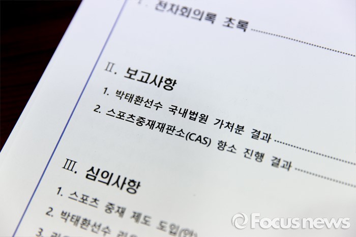 (서울=포커스뉴스) 8일 오전 서울 송파구 올림픽파크텔에서 대한체육회 제4차 긴급 임시 이사회가 열리고 있다. 이번 임시 이사회에서는 박태환의 리우 올림픽 출전 여부가 긴급 안건으로 상정됐다.