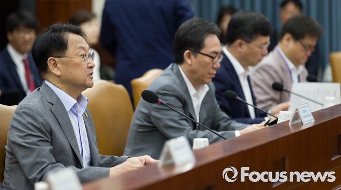 (서울=포커스뉴스) 유일호(왼쪽) 경제부총리 겸 기획재정부 장관이 8일 오전 서울 종로구 정부서울청사에서 열린 제182차 대외경제장관회의에 자리해 모두발언 하고 있다.