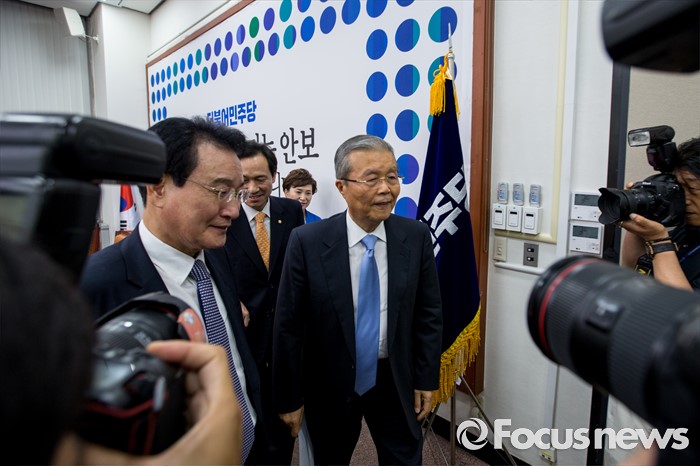 (서울=포커스뉴스) 김종인(오른쪽) 더불어민주당 비상대책위 대표가 8일 오전 서울 여의도 국회에서 열린 비상대책위원회의를 마친 뒤 회의실을 나서고 있다.