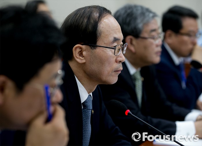 (서울=포커스뉴스) 8일 오전 서울 여의도 국회에서 열린 환경노동위원회 전체회의에 참석한 윤성규(왼쪽 두번째) 환경부 장관 등이 의원들의 질의를 듣고 있다.