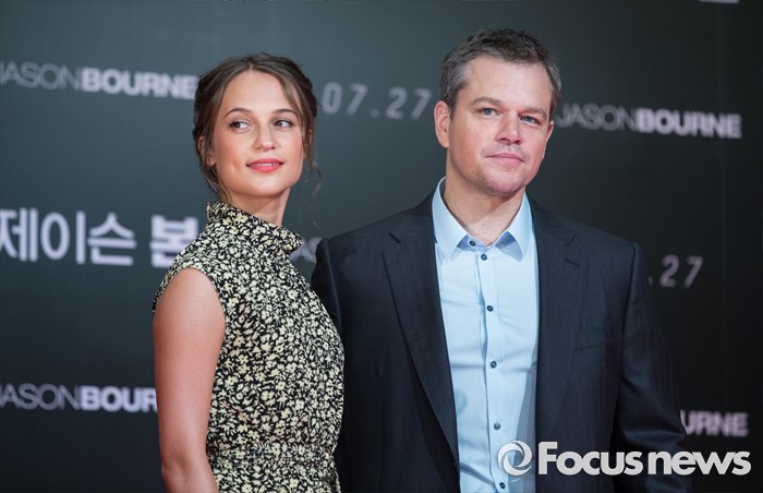 맷 데이먼과 알리시아 비칸데르의 내한으로 화제를 모은 영화 '제이슨 본'은 국내에서 오는 27일 개봉 예정이다.(서울=포커스뉴스) 8일 오전 서울 종로구 포시즌스호텔 서울에서 열린 영화 '제이슨 본' 아시아 프리미어 기자간담회에 참석한 배우 알리시아 비칸데르(왼쪽)와 맷 데이먼이 포토타임을 갖고 있다. 2016.07.08 김유근 기자