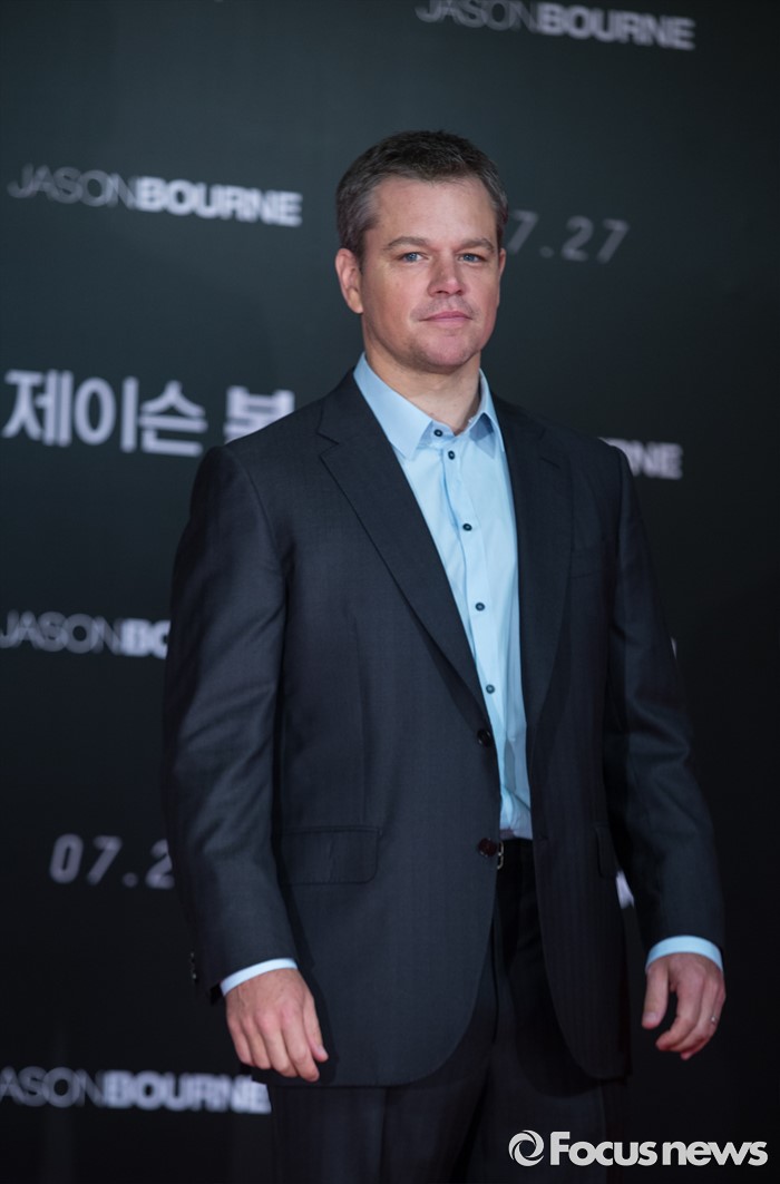 맷 데이먼과 알리시아 비칸데르의 내한으로 화제를 모은 영화 '제이슨 본'은 국내에서 오는 27일 개봉 예정이다.(서울=포커스뉴스) 8일 오전 서울 종로구 포시즌스호텔 서울에서 열린 영화 '제이슨 본' 아시아 프리미어 기자간담회에 참석한 배우 맷 데이먼이 포토타임을 갖고 있다. 2016.07.08 김유근 기자