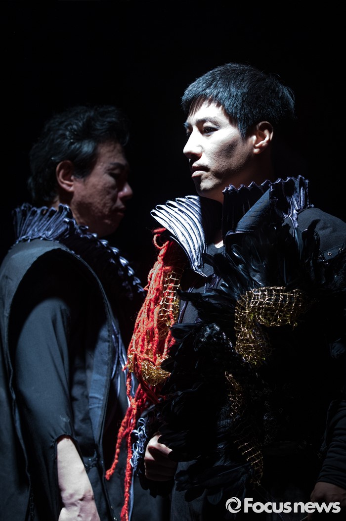 (서울=포커스뉴스) 8일 오후 서울 종로구 동숭아트센터에서 열린 오페라연극 '맥베스' 프레스콜에 맥베스역을 맡은 바리톤 권한준(왼쪽)과 연극배우 김재만이 주요장면을 시연하고 있다.
