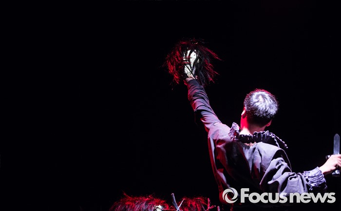 (서울=포커스뉴스) 8일 오후 서울 종로구 동숭아트센터에서 열린 오페라연극 '맥베스' 프레스콜에 참여한 배우 김재만이 주요장면을 시연하고 있다.