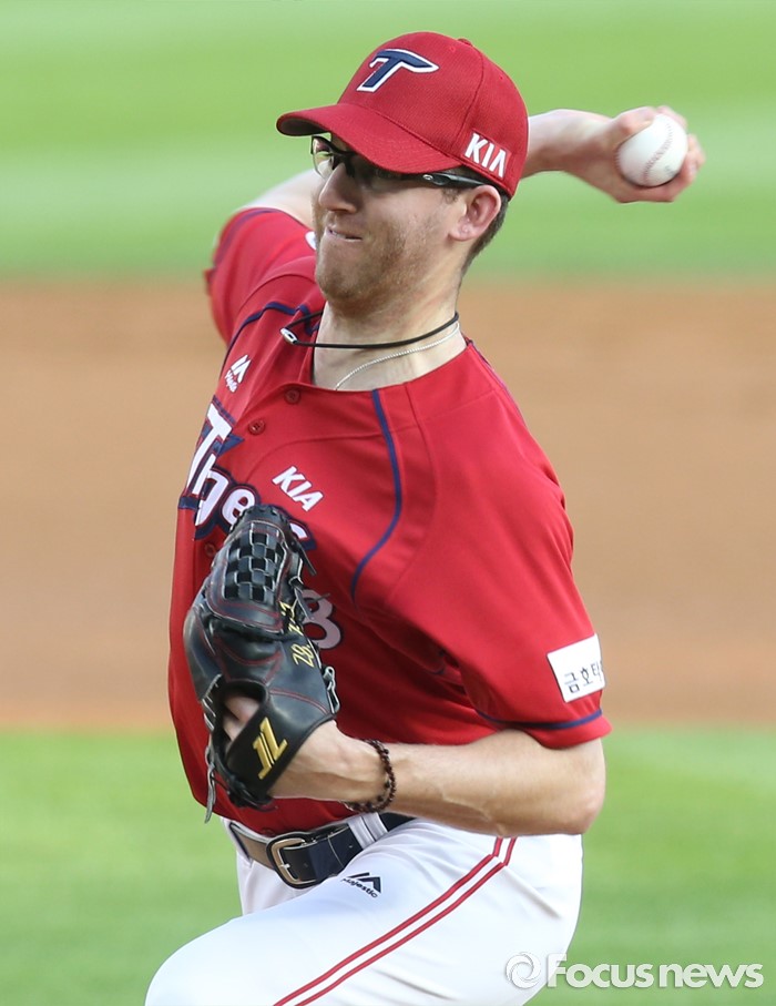 (서울=포커스뉴스) 8일 서울 잠실구장에서 열린 2016 프로야구 KIA-두산 경기에서 1회말 KIA 선발투수 지크가 투구하고 있다.