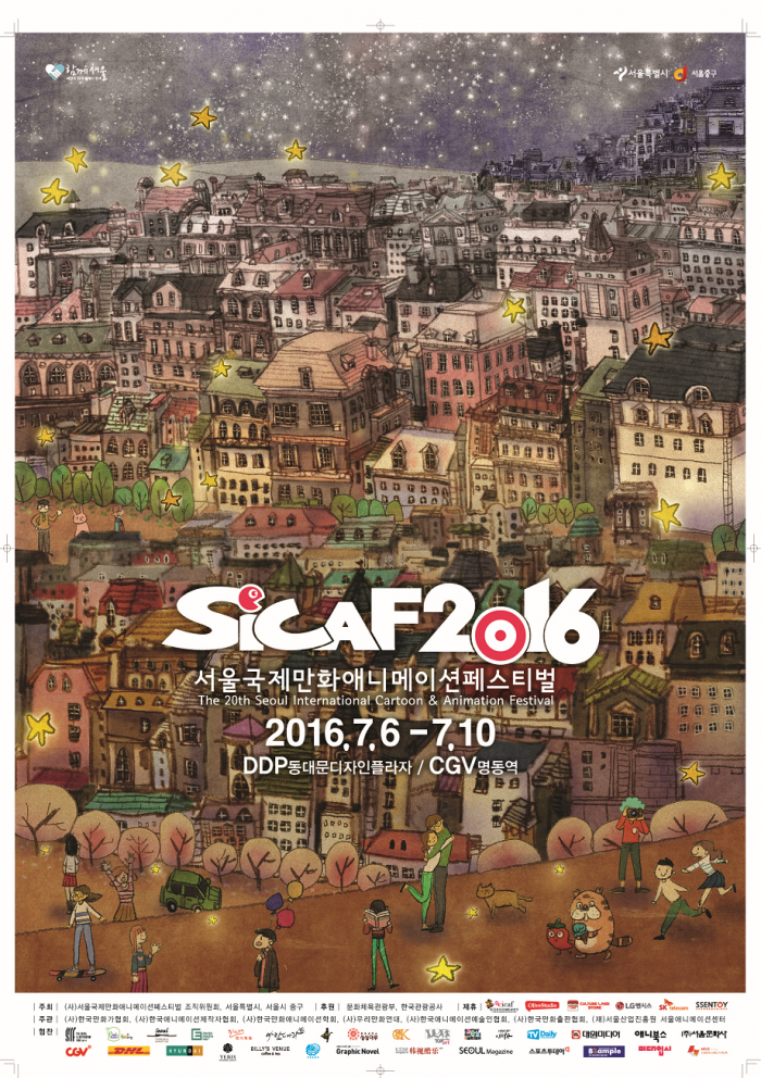 시카프2016은 1995년에 시작돼 20회를 맞이한 세계 5대 애니메이션 영화제이자 예술, 기술, 교육, 산업 등이 함께 모여 대중과 함께 향유하는 허브형 축제다. 올해는 지난 6일 개막해 오는 10일까지 5일간 진행된다. 영화제는 CGV명동역, 전시는 동대문디자인플라자(DDP), 부대행사로 가족(키즈)상영관은 서울애니메이션센터에서 각각 진행된다.