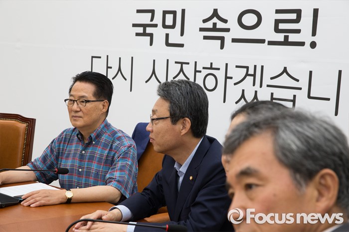 (서울=포커스뉴스) 박지원(왼쪽) 국민의당 비상대책위원장이 10일 오후 서울 영등포구 국회에서 열린 선관위의 편파적 행위에 대한 대책 회의의 시작을 기다리고 있다.