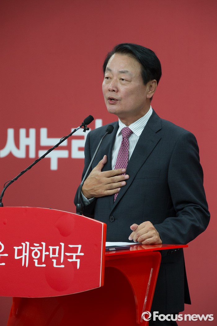 (서울=포커스뉴스) 10일 오후 서울 영등포구 새누리당 당사에서 한선교 새누리당 의원이 당대표 출마 기자회견을 하고 있다.