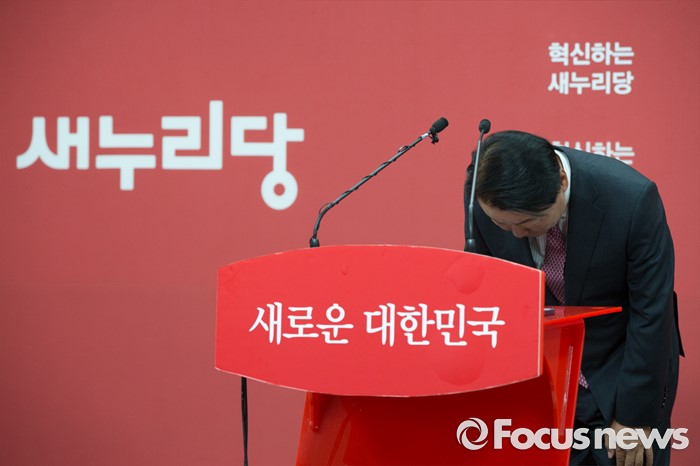 (서울=포커스뉴스) 10일 오후 서울 영등포구 새누리당 당사에서 한선교 새누리당 의원이 당대표 출마 기자회견 전 인사를 하고 있다.