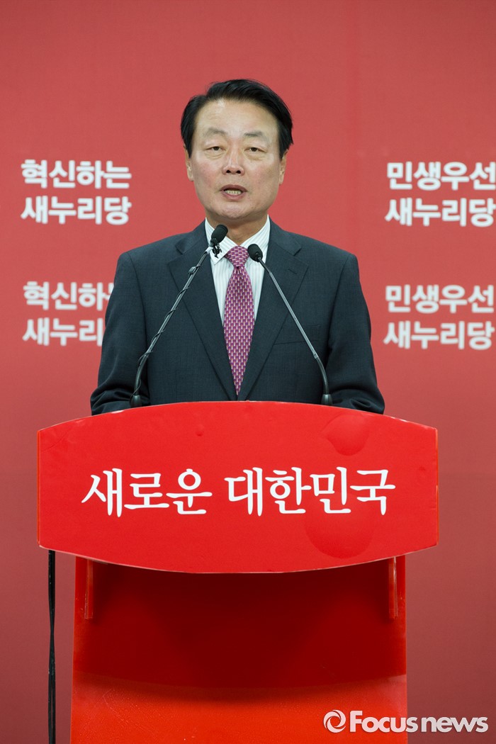 (서울=포커스뉴스) 10일 오후 서울 영등포구 새누리당 당사에서 한선교 새누리당 의원이 당대표 출마 기자회견을 하고 있다.