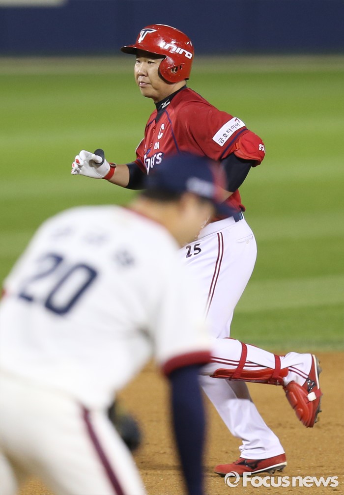(서울=포커스뉴스) 10일 서울 잠실구장에서 열린 2016 프로야구 KIA-두산 경기 7회초 1사 2루에서 KIA 이범호가 좌월 2점 홈런을 치고 그라운드를 돌고 있다.