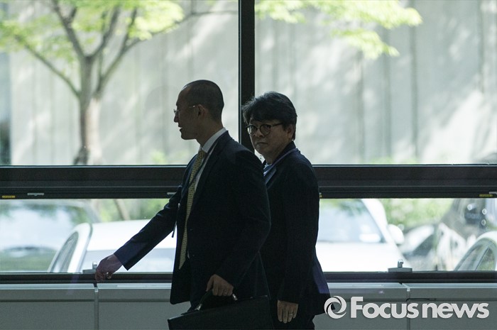(서울=포커스뉴스) '대우조선 비자금 조성' 의혹을 받고 있는 남상태 전 사장의 최측근 유명 건축가 이창하(오른쪽)가 11일 오전 서울 서초구 서울중앙지방검찰청으로 들어서고 있다.