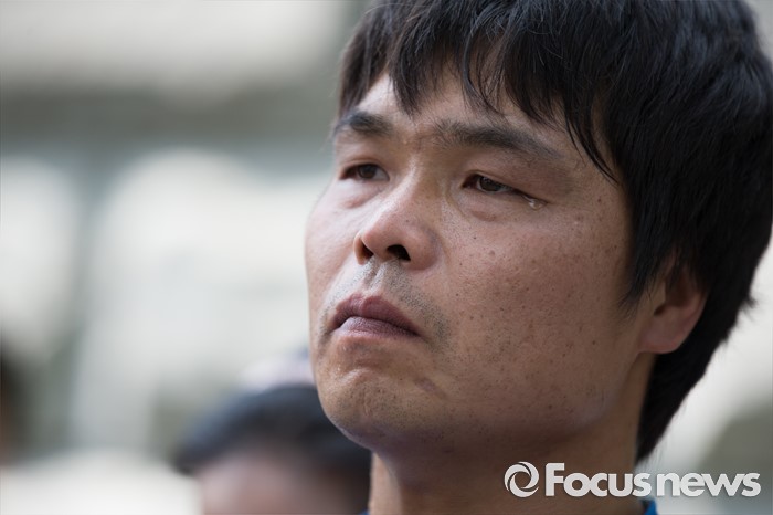 (서울=포커스뉴스) 11일 오전 서울 서초구 대검찰청 앞에서 열린 '삼례 나라슈퍼 3인조 강도치사 사건' 진정서 제출 기자회견에서 사건의 피해자가 눈물을 흘리고 있다.