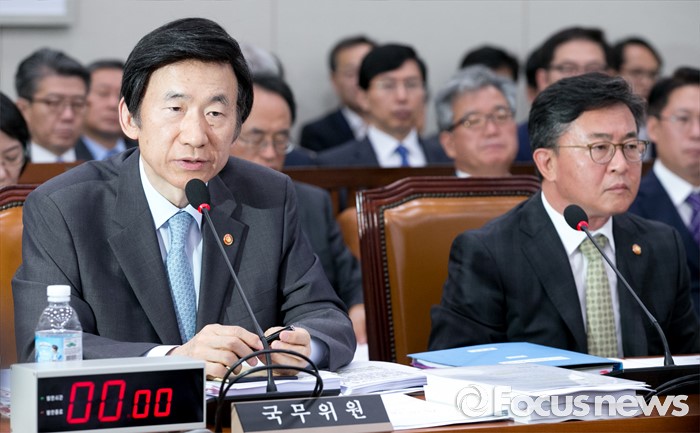 (서울=포커스뉴스) 11일 오전 서울 여의도 국회에서 열린 외교통일위원회 전체회의에 참석한 윤병세 외교부 장관이 의원들의 질의에 답하고 있다. 오른쪽은 홍용표 통일부 장관.