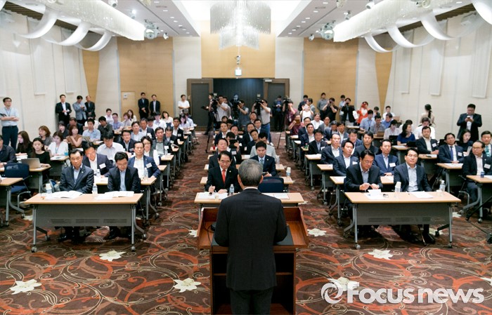(서울=포커스뉴스) 11일 오후 서울 여의도 중소기업중앙회관에서 열린 새누리당 전국원외위원장협의회 전체회의에 참석한 김희옥 혁신비대위원장이 인사말을 하고 있다.
