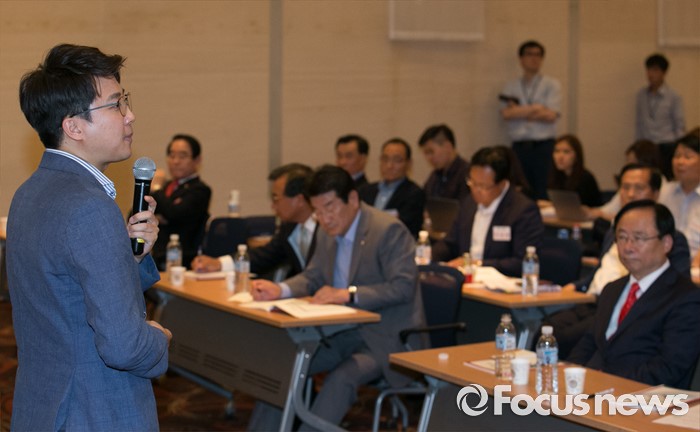 (서울=포커스뉴스) 11일 오후 서울 여의도 중소기업중앙회관에서 열린 새누리당 전국원외위원장협의회 전체회의에 참석한 이준석 노원병 위원장이 주제발표를 하고 있다.