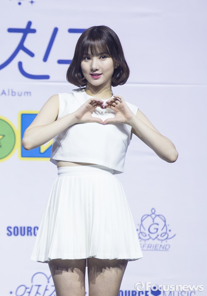 (서울=포커스뉴스) 11일 오후 서울 광진구 예스24 라이브홀에서 열린 걸그룹 여자친구의 첫번째 정규앨범 'LOL' 발표 쇼케이스에 참여한 멤버 은하가 포토타임을 갖고 있다.