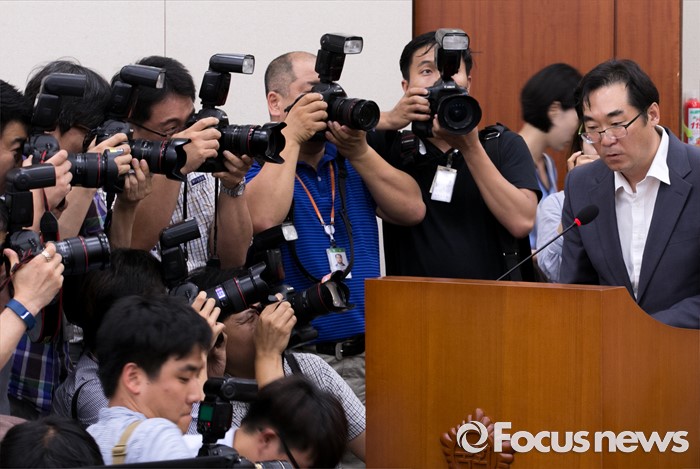 카메라에 둘러싸인 나향욱 정책기획관