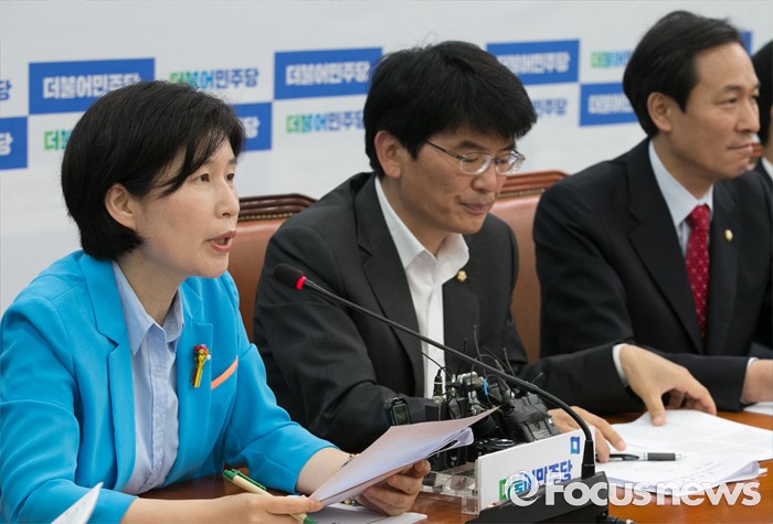 (서울=포커스뉴스) 12일 오전 서울 여의도 국회에서 열린 더불어민주당 원내대책회의에 참석한 백혜련 원내부대표가 발언하고 있다.
