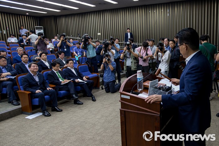(서울=포커스뉴스) 박지원 국민의당 비상대책위원장이 12일 오전 서울 여의도 국회에서 열린 의원총회에 참석해 의사봉을 두드리고 있다.