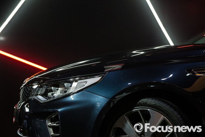 (서울=포커스뉴스) 12일 오전 서울 강남구 인터와이드 스튜디오에서 열린 '2017 K5, K5 PHEV' 출시 사진 및 영상 발표회에 K5 GT-Line 차량이 전시되어 있다.