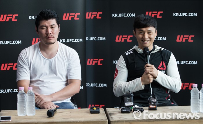 | △ 감독과 함께 기자회견 하는 최두호 |
