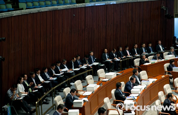 (서울=포커스뉴스) 12일 오전 서울 여의도 국회에서 2015회계연도 결산을 위해 열린 예산결산특별위원회 전체회의에 참석한 관계부처 직원들이 뒷줄에 앉아 자리하고 있다.