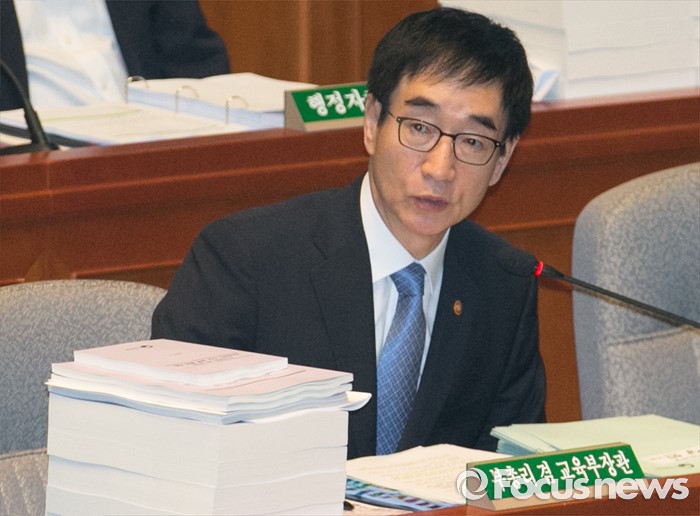 (서울=포커스뉴스) 12일 오전 서울 여의도 국회에서 2015회계연도 결산을 위해 열린 예산결산특별위원회 전체회의에 참석한 이준식 사회부총리 겸 교육부 장관이 의원들의 질의에 답하고 있다.