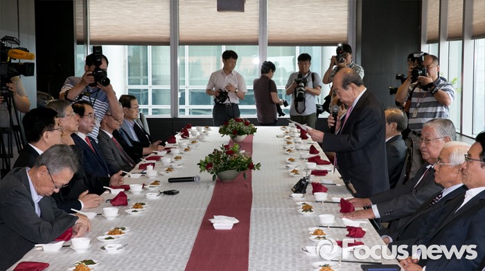 (서울=포커스뉴스) 김수한 새누리당 상임고문이 12일 오후 서울 여의도 한 중식당에서 열린 김희옥 혁신비대위원장과의 상임고문단 오찬에 참석해 인사말을 하고 있다.