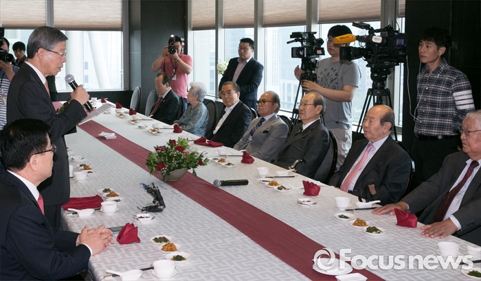(서울=포커스뉴스) 김희옥 새누리당 혁신비대위원장이 12일 오후 서울 여의도 한 중식당에서 열린 상임고문단 오찬에 참석해 인사말을 하고 있다.