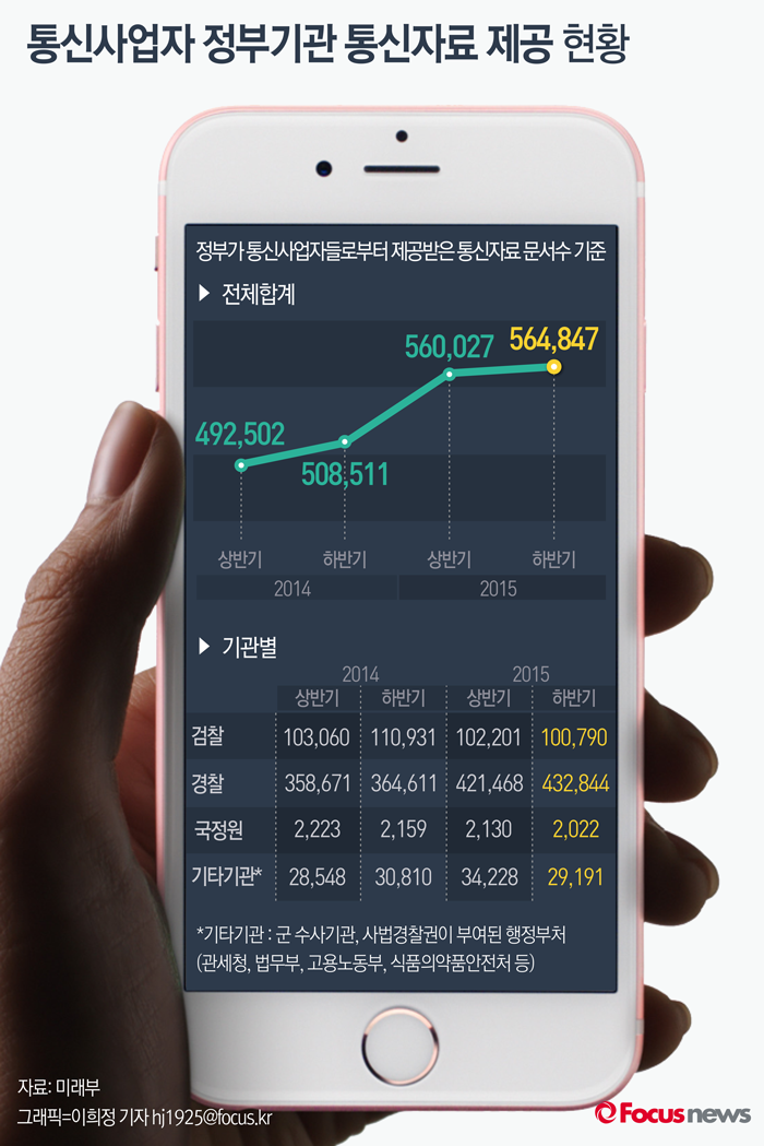| △ [그래픽] 통신사업자 정부기관 통신자료 제공 현황 |