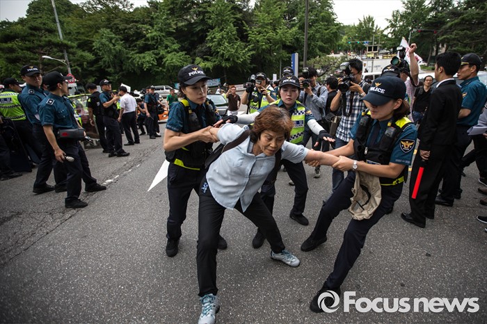 (서울=포컷뉴스) 12일 오후 서울 중구 밀레니엄서울힐튼호텔 앞에서 '일본 자위대 62주년 창설 기념식'을 규탄하는 시민단체들의 시위가 열리고 있다.