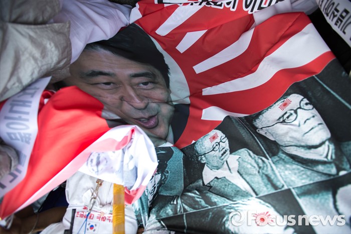 (서울=포컷뉴스) 12일 오후 서울 중구 밀레니엄서울힐튼호텔 앞에서 '일본 자위대 62주년 창설 기념식'을 규탄하는 시민단체들의 시위가 열리고 있다.