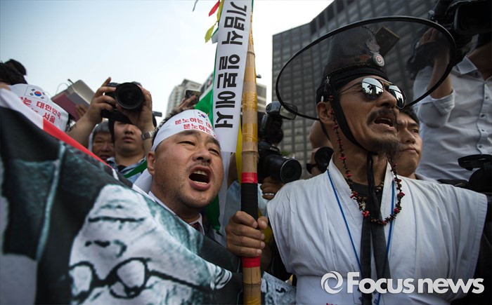 (서울=포컷뉴스) 12일 오후 서울 중구 밀레니엄서울힐튼호텔 앞에서 '일본 자위대 62주년 창설 기념식'을 규탄하는 시민단체들의 시위가 열리고 있다.