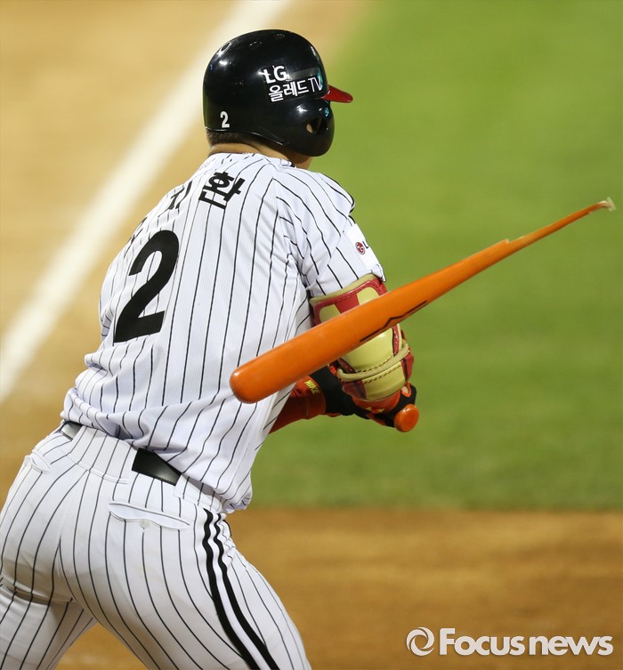 △ 배트 부러지는 오지환의 타격