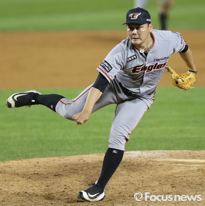 (서울=포커스뉴스) 12일 서울 잠실구장에서 열린 2016 프로야구 한화-LG 경기 6회말 한화 투수 송창식이 투구하고 있다.
