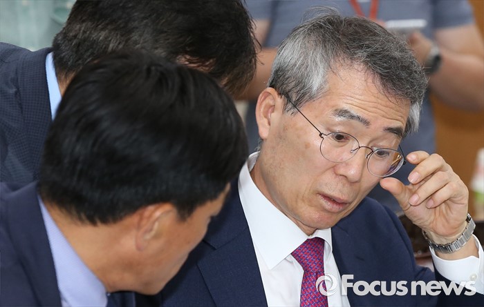 최저임금위원회의 결정이 법적 효력을 가지려면 고용노동부 장관이 고시(8월5일)하기 20일 전인 오는 16일까지는 심의를 마쳐야 한다.4일 오후 세종시 정부세종청사 고용노동부 최저임금위원회 전원회의실에서 열린 제8차 전원회의에서 박준성 위원장이 류경희 부위원장과 대화하고 있다. 2016.07.04 김기태 기자